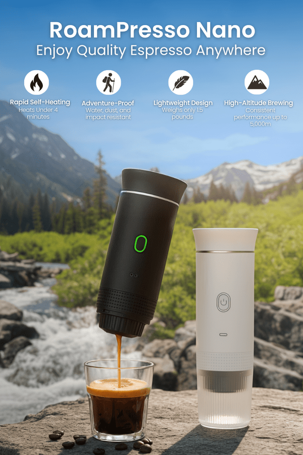 Self-heating and rechargeable, Roampresso lets you brew legit espresso miles from the nearest plug.