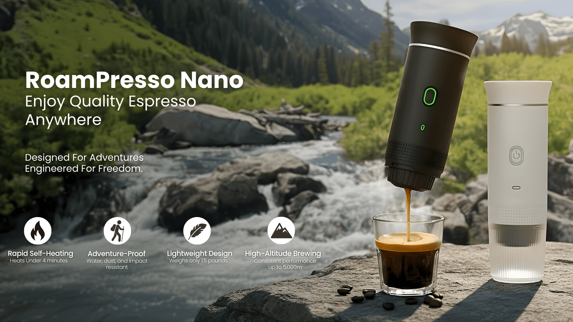 Self-heating and rechargeable, Roampresso lets you brew legit espresso miles from the nearest plug.